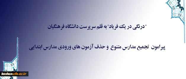 درنگی در یک فریاد به قلم سرپرست دانشگاه فرهنگیان پیرامون تجمیع مدارس متنوع و حذف آزمون های ورودی مدارس ابتدایی