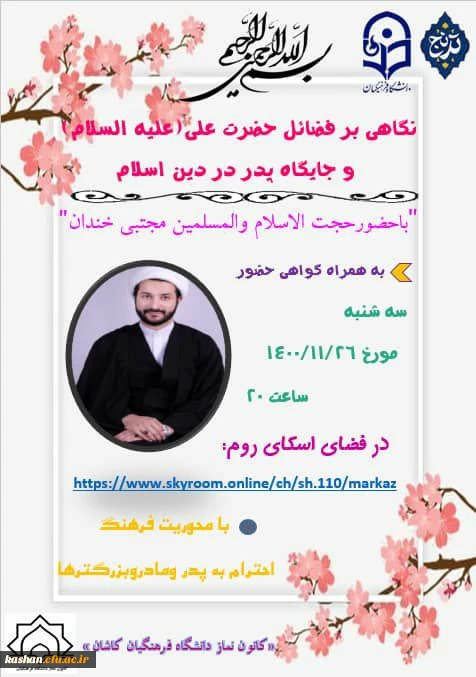 امتیاز دهید : کارگاه نگاهی بر فضائل حضرت علی (ع) و جایگاه پدر در دین اسلام 2 دوشنبه 18 بهمن 1400 ساعت 14:09